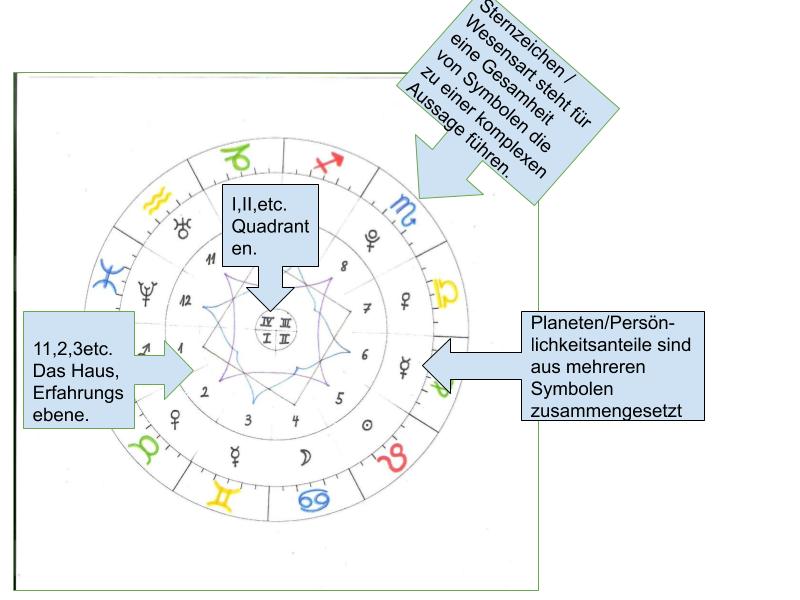 Übersetzt die Wesensarten (Sternzeichen), die Handlungsebenen(Häuser), die Raumebenen(Quadranten) und die Persönlichkeitsanteile(Planeten).